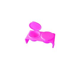 Recipient din plastic dur cu 2 cupe folosit atat pentru combinarea vopselelor si a pudrelor acrilice pentru a obtine noi nuante, cat si pentru pastrarea acestora un timp mai indelungat.