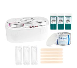 the kit includes: - multi-functional wax heater 270w - 400 ml can wax - depilatory wax on a roll - 3 pcs. - epilation strips 20 pcs - 3 packs - wooden spatula for applying wax - 5 pcs multifunctional device for heating wax cartridges and cans with wax for depilation. The...
