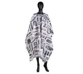 the hairdressing cape is made of high quality material (100% polyesrer), so that the hair does not stick, but slides over the surface of the cape. fastening is durable and adjustable with metal pins.