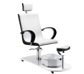 cosmetic chair for pedicure with massager. comfortable seat, adjustable up and down, wooden platform for a paddling pool, pedicure footrest with height adjustment option. seat and footrest upholstered with high-quality eco-leather.