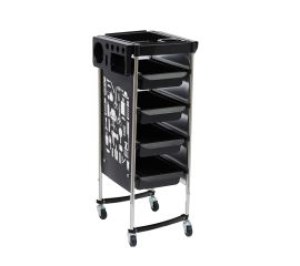 black hairdressing assistant with 2 lockable key shutters, 4 litter boxes and 15 compartments for hairdressing assortment. stable construction will ensure long-term use. table mounted on wheels, thanks to which the tools will always be at hand.  helper with parts for self-assembly....