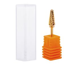 Capat de freza din carbid Lila Rossa, varf conic, auriu, universala, CF01 Freza din carbid se utilizeaza pentru inlaturarea acrylului sau a gelului de pe unghii, pentru modelarea ei şi finisare Capatul de freza poate fi folosit cu usurinta atat pentru manichiura,...